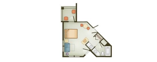 Deluxe Studio Villas feature feature a queen size bed and double sleeper sofa.