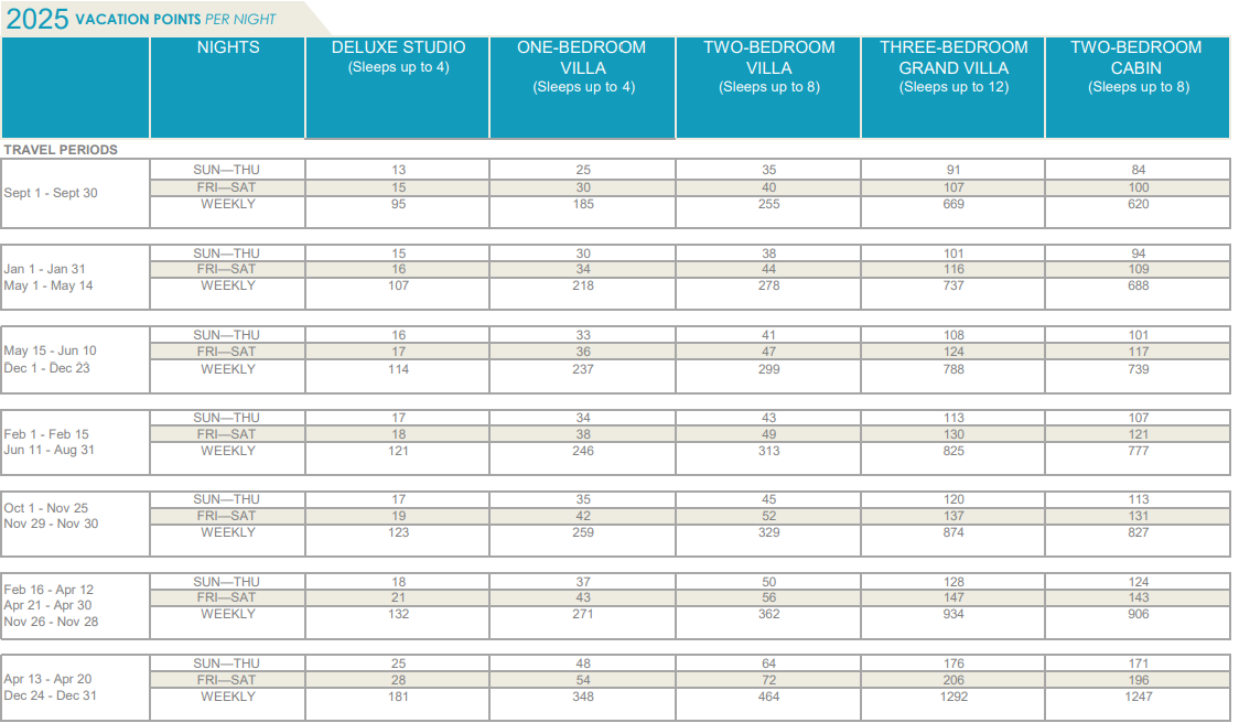 | Resort & ID | Pts. | Pts. Available | Use Year | $ / Pt. | Price | Status |