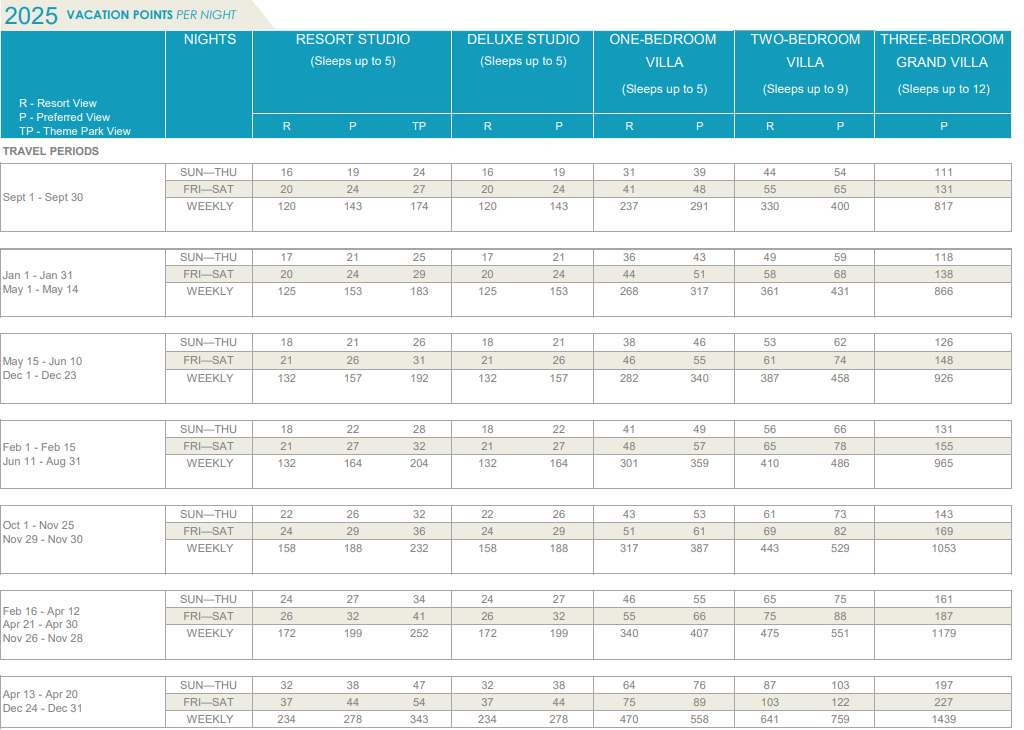 2026 Point Chart