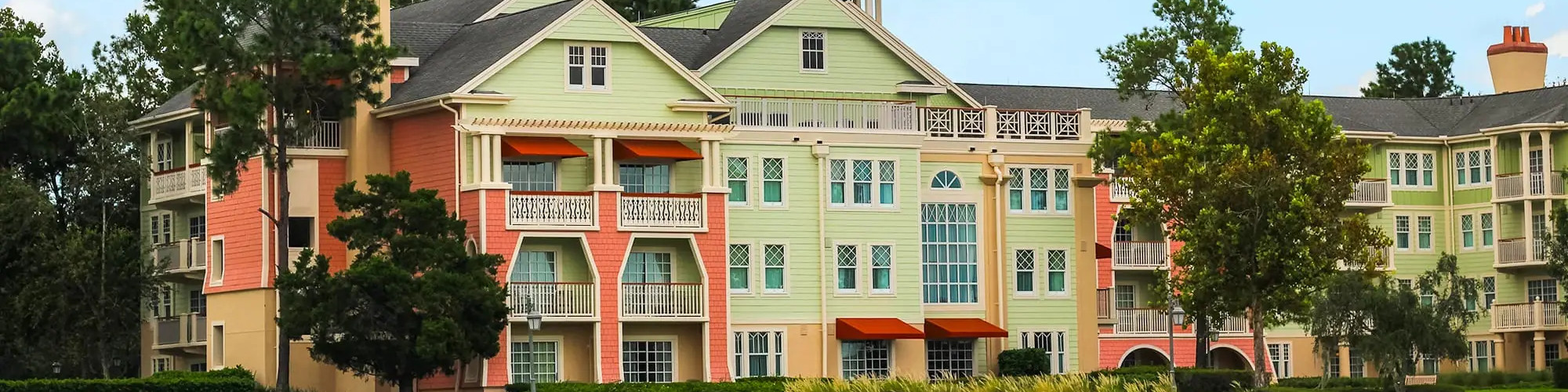 Disney’s Saratoga Springs Resort and Spa is just across the lake from Disney Springs and is accessible by a walking bridge or boat ride. It’s modeled after Saratoga Springs, NY and the equestrian theme runs deep here. They also feature the Treehouse Villas which are 3 bed, 2 bath standalone cabins in the woods with BBQ pits and we like to call it “Glamping” as Glorified camping! The resort consists of five swimming pools: three leisure pools and two feature pools including waterslides, whirlpool spas and aqua-play areas.
